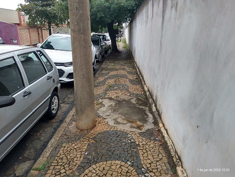 Antes de pensar em pedágio urbano, taxas de congestionamento, etc. é preciso tornar o ato de caminhar agradável. E para isso precisamos de calçadas melhores e maiores, mais largas. E que elas sejam construídas onde ainda não existem.